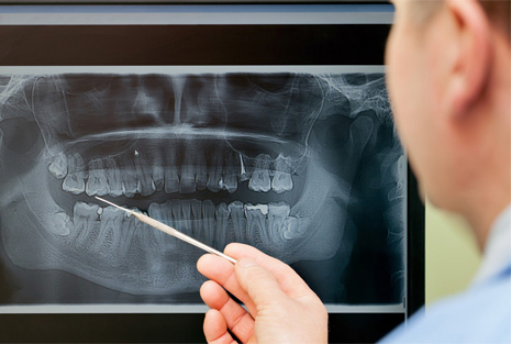 歯周病が進行すると歯を支える骨にまで炎症が広がります。炎症によって骨は溶けてしまうので、どの程度症状が進んでいるかをレントゲン検査で確認します。